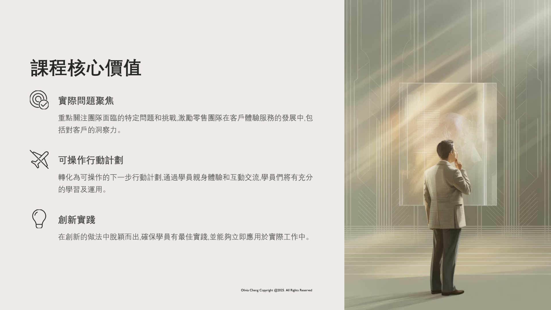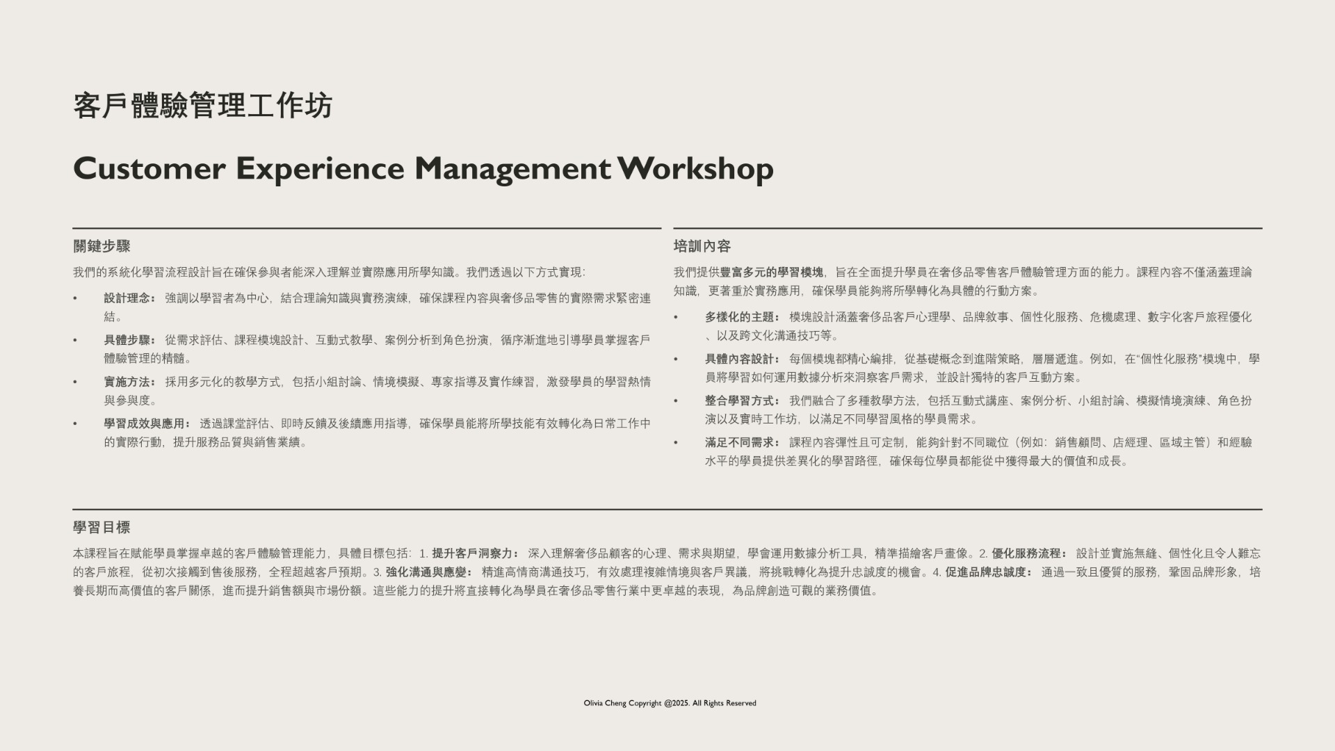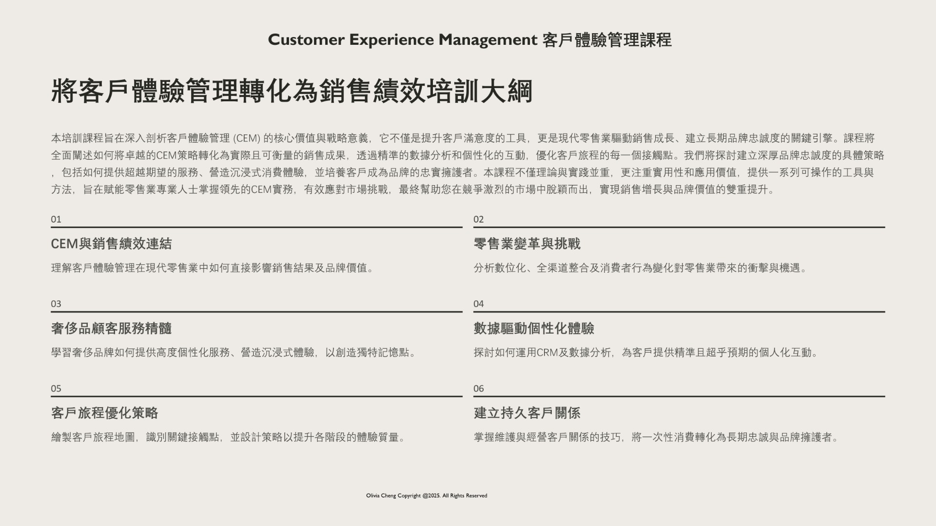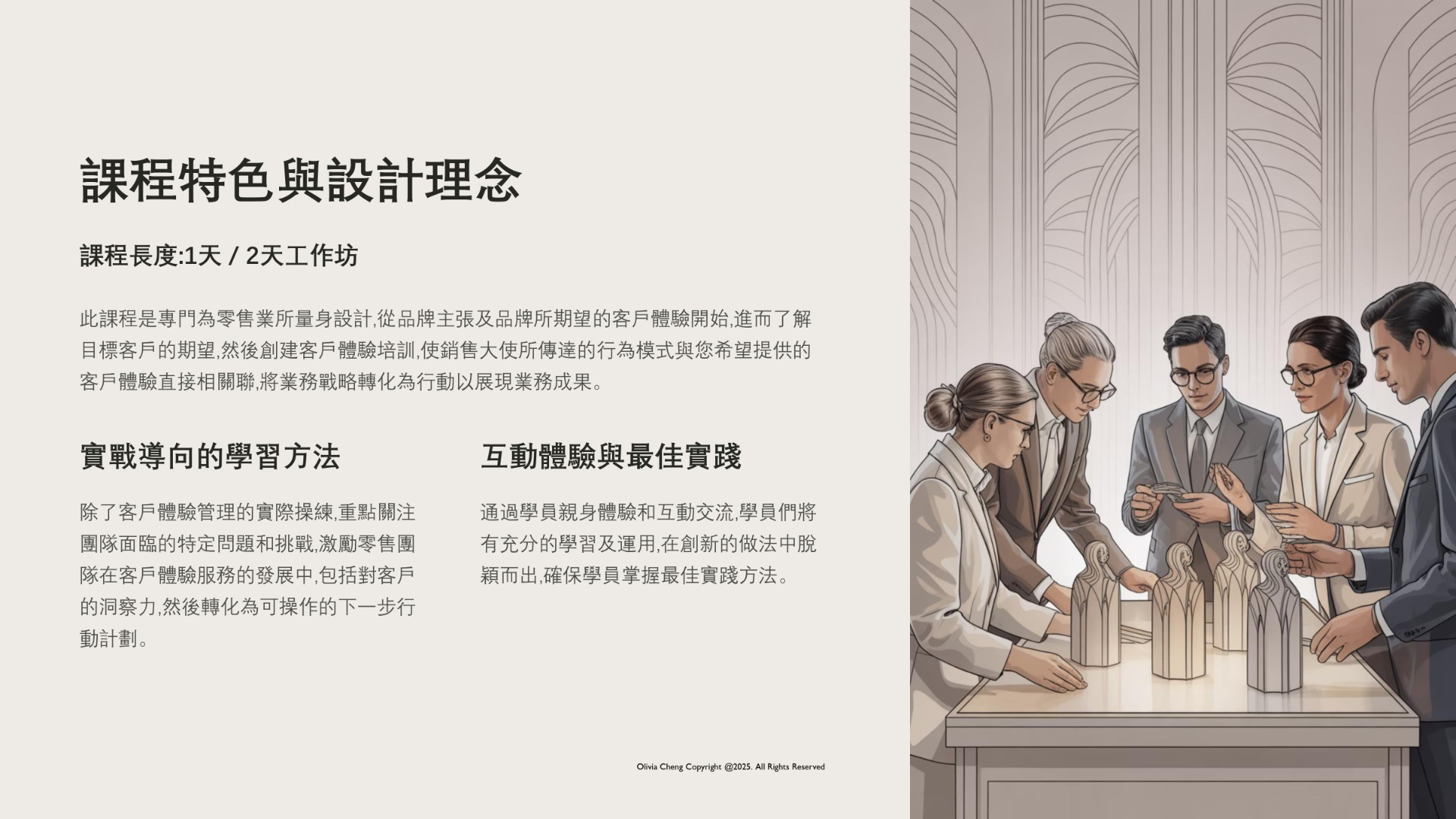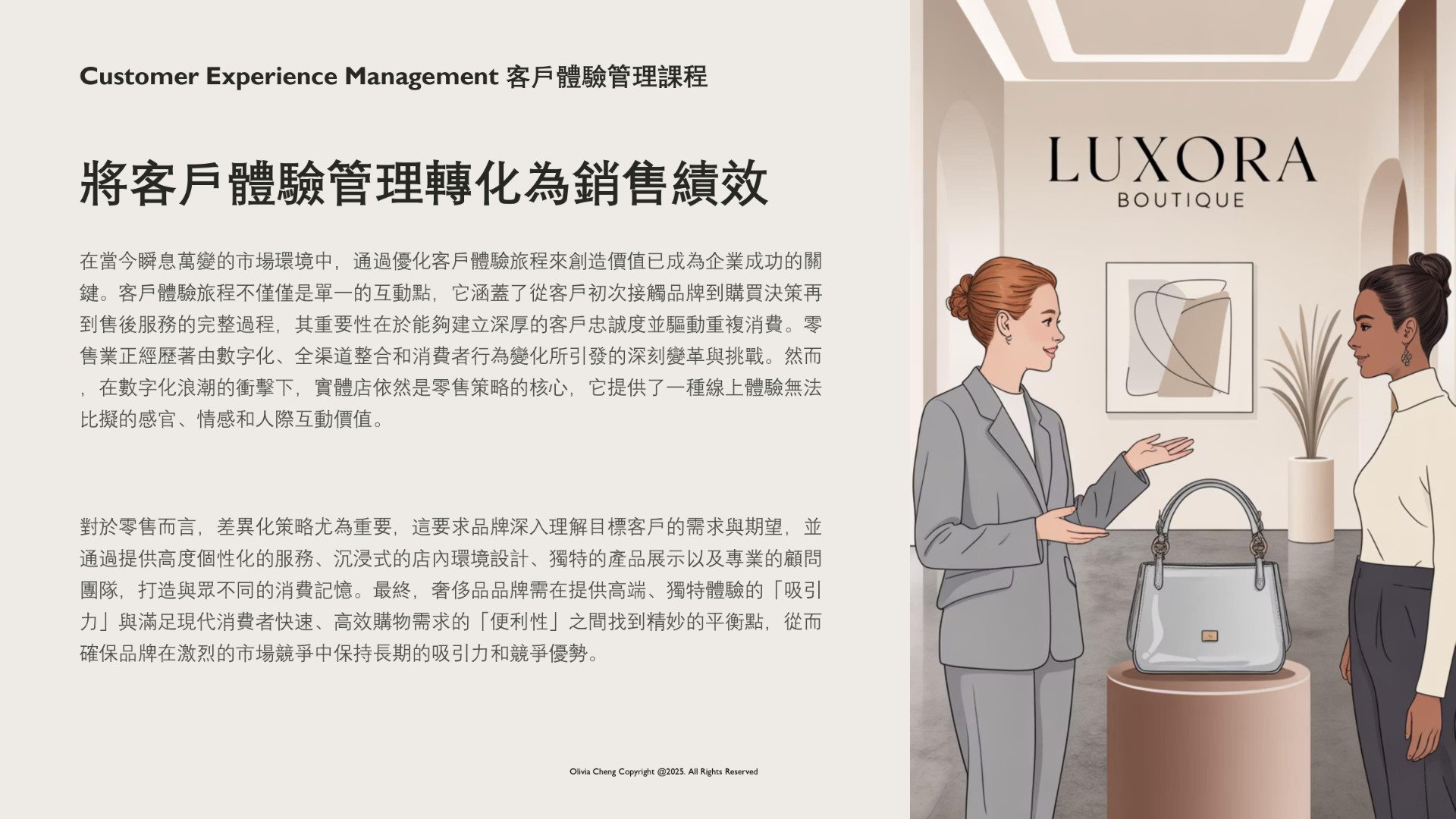 優化銷售旅程: 將奢侈品服務精髓轉化為可操作的行動計劃,實質提升客單價 。